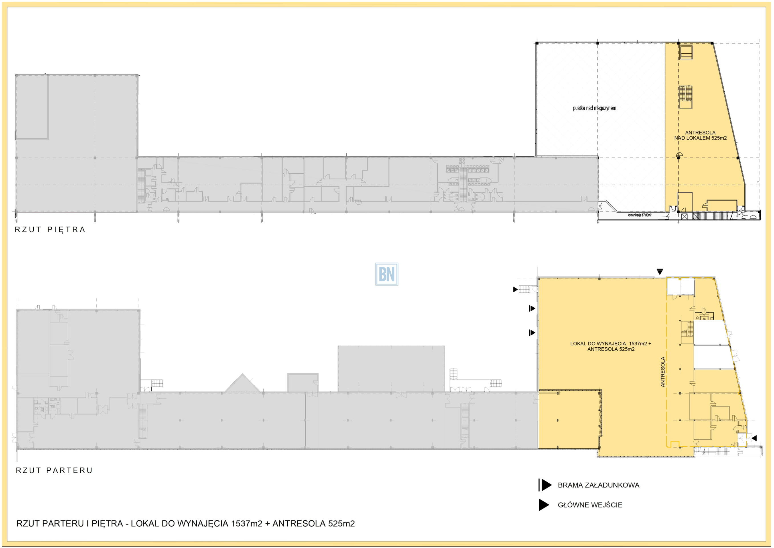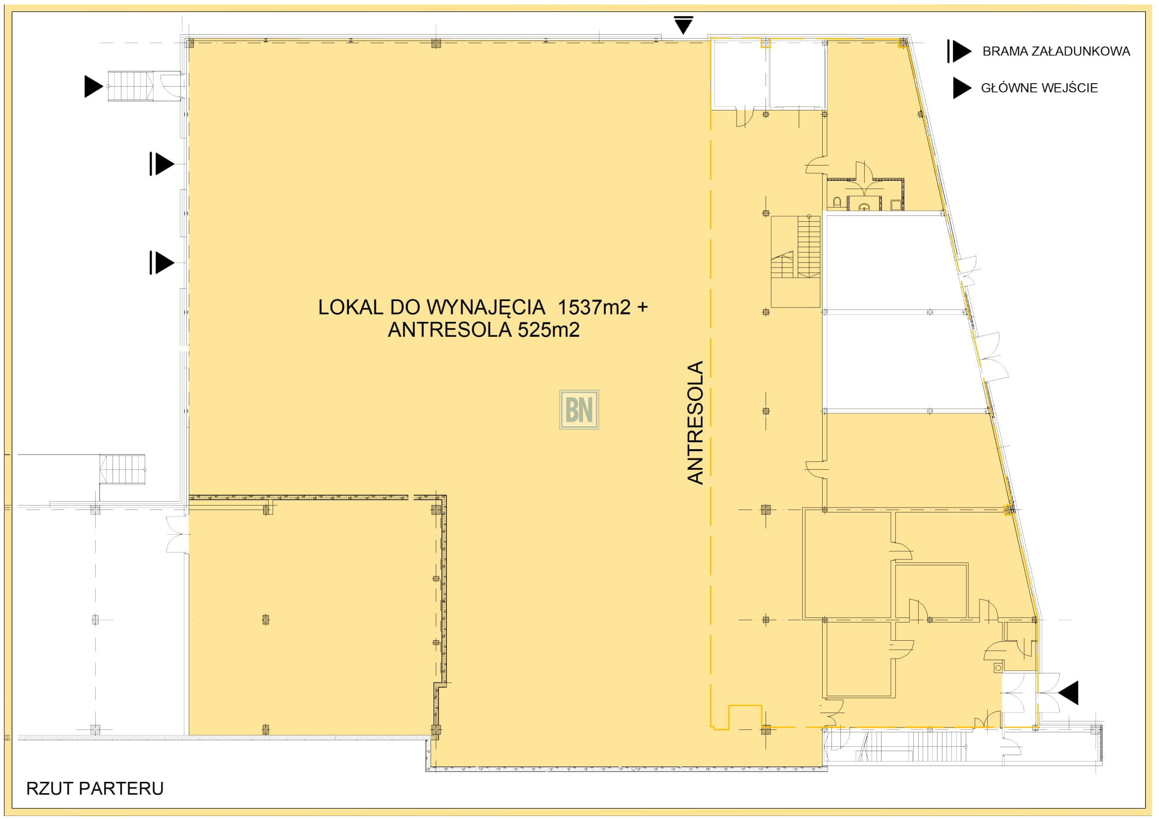 Nieruchomość składa się z lokalu o powierzchni około 1537m2 oraz antresoli o powierzchni 525m2.